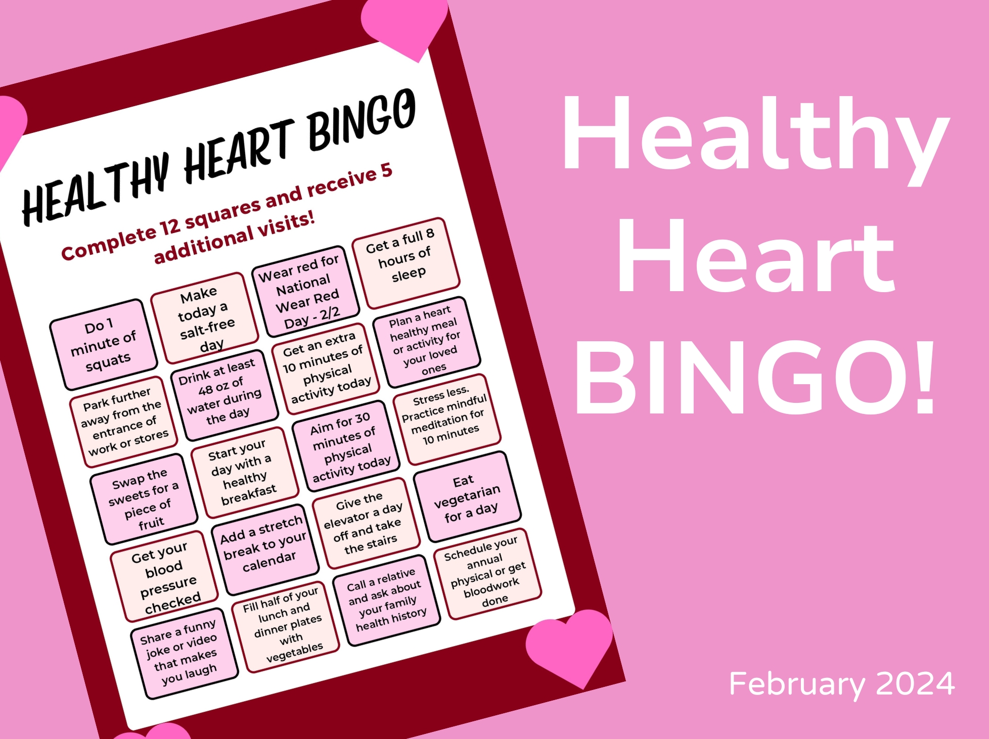 February 2024 NEW healthy heart bingo